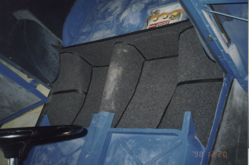 A csomagtartót belülről a hátsó ülés támlája zárja le. A szőnyegek műbőrrel szegettek, a középső és az oldalsó konzolokra ragasztással rögzítettük.