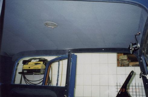 A tetőkárpitok szegélye karton, illetve szürkelemez, textillel borítva. Ugyanígy van borítva az összes szabad lemezfelület.