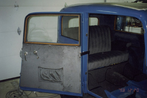 Az ajtólapra az eredetivel megegyező zseb került, az ablakszegélyek szintén textil burkolatot kaptak.
